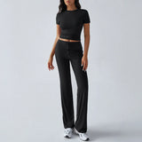 Made to flatter with effortless ease, this matching set hugs your shape with a smooth, comfortable feel that moves with you. The fitted top and relaxed-length pants create a sleek, balanced silhouette that feels confident without trying too hard. Wear it together for an instantly polished off-duty look, or style each piece separately to elevate your everyday essentials. Perfect for travel days, errands, and chic lounge moments.